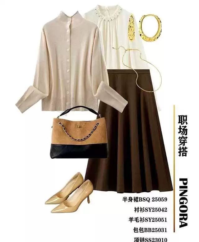 选羊毛开衫,不光图它保暖,更看重那份职场沉稳感;而半裙则能优雅地勾勒身形,得体又大方。