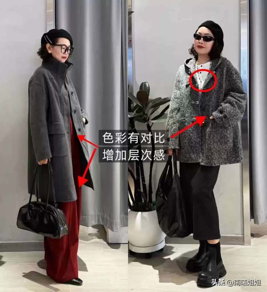 对比图2.颜色暗沉显老气VS时髦元素增加层次