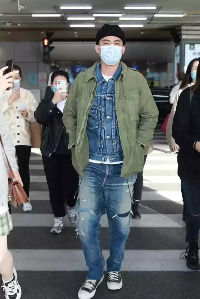 欧豪的个人气质本身就偏型男范儿,阳刚气十足。当他穿上牛仔夹克和军绿色军装风外套时,更是男人味爆棚,帅气有型魅力四射。