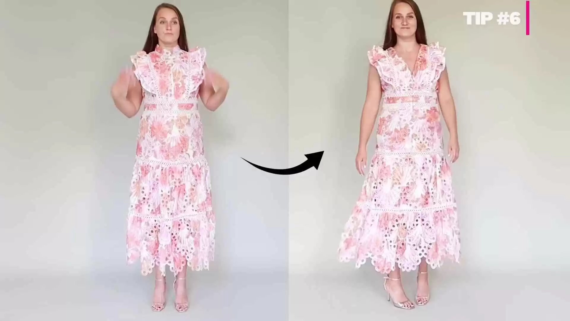 ·技巧5:选择交叉式款式。交叉设计的上衣能修饰腰线,看起来更苗条。