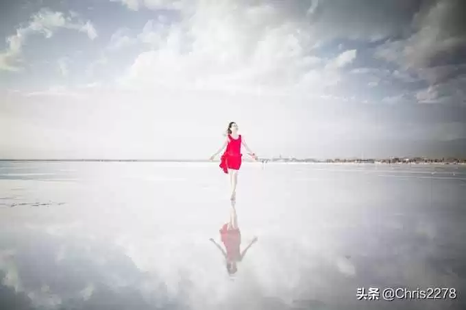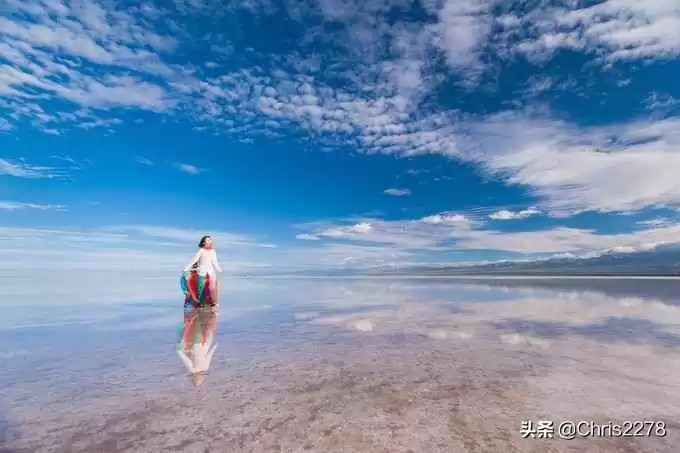 察尔汗盐湖,纯白纯净,透明的湖水和雪白景色,超震撼。