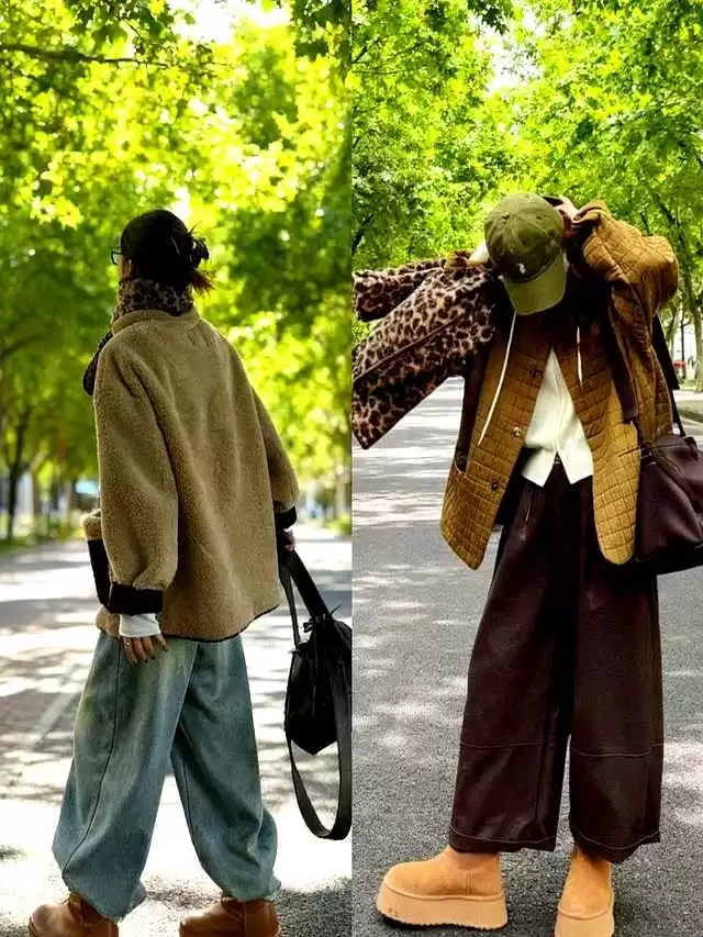 阔腿裤绝对是秋冬搭配的神器,百搭又显高。试试深棕色灯芯绒阔腿裤配短款亮色羽绒服,保暖的同时还能优化身材比例。或者用西装面料的阔腿裤搭亮色毛衣,办公室穿也超合适。更心机的是,裤子和鞋子选同色系,能最大化拉长腿部线条。比如深棕裤配驼色靴子,或黑裤配黑靴,简单易学效果棒。