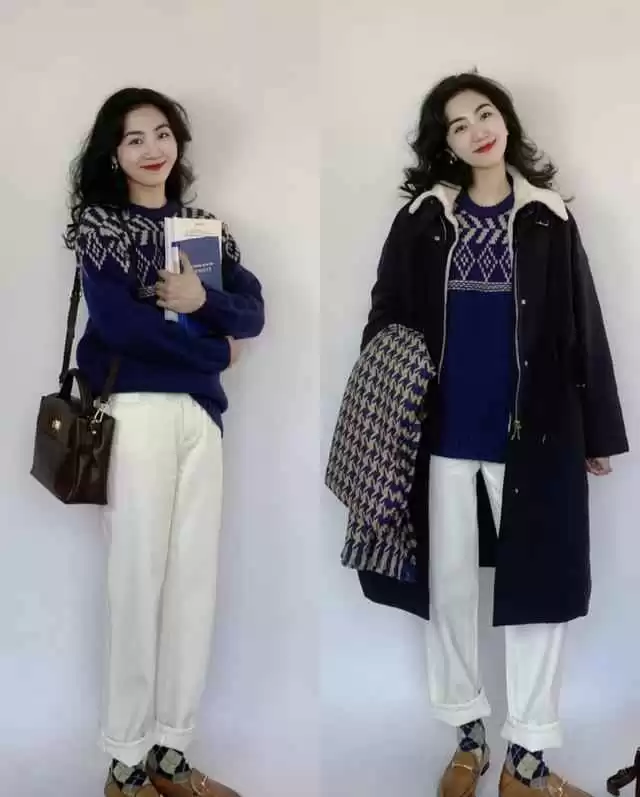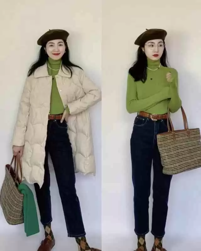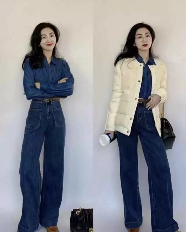 结合最新趋势,咱们可以把经典搭配做点小更新:第二套里的蓝色牛仔裤换成微喇款式,配厚底乐福鞋,更显利落;第六套的卡其色棉服改用热巧克力色环保面料,温暖又环保;第九套加上叠戴金属项链,下身穿皮质legging,质感瞬间提升。