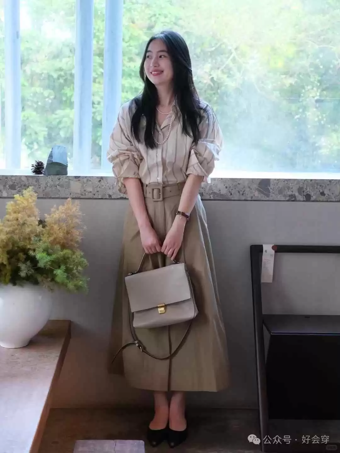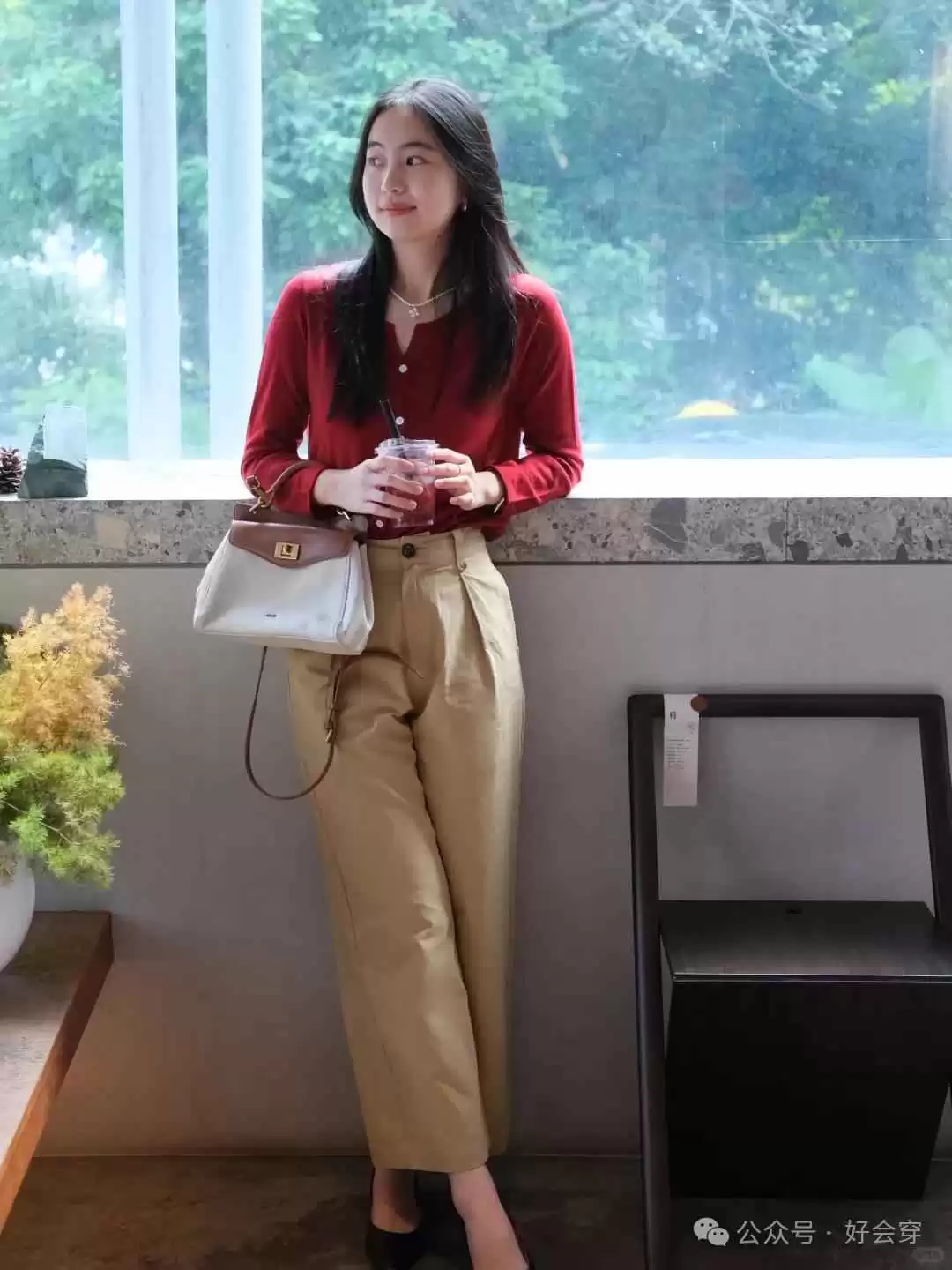 想穿出显瘦效果,可以尝试高腰裤搭配修身的上衣,避免过于宽松。深色系有视觉收缩感,同时利用腰带突出腰线,整体看起来更利落。