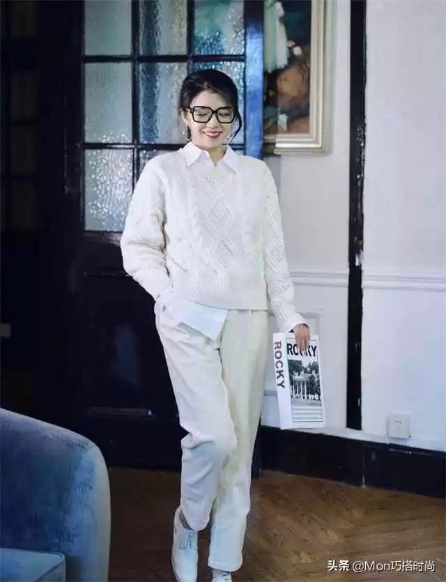 像三木这样,把毛衣塞进高腰裤,外套一披,遮肉又显高,绝了!