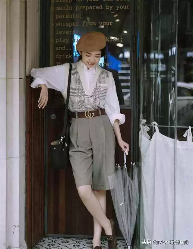 棕或黑色贝雷帽超百搭。配毛衣半裙是温柔少女,搭格纹西装秒变英伦酷girl~