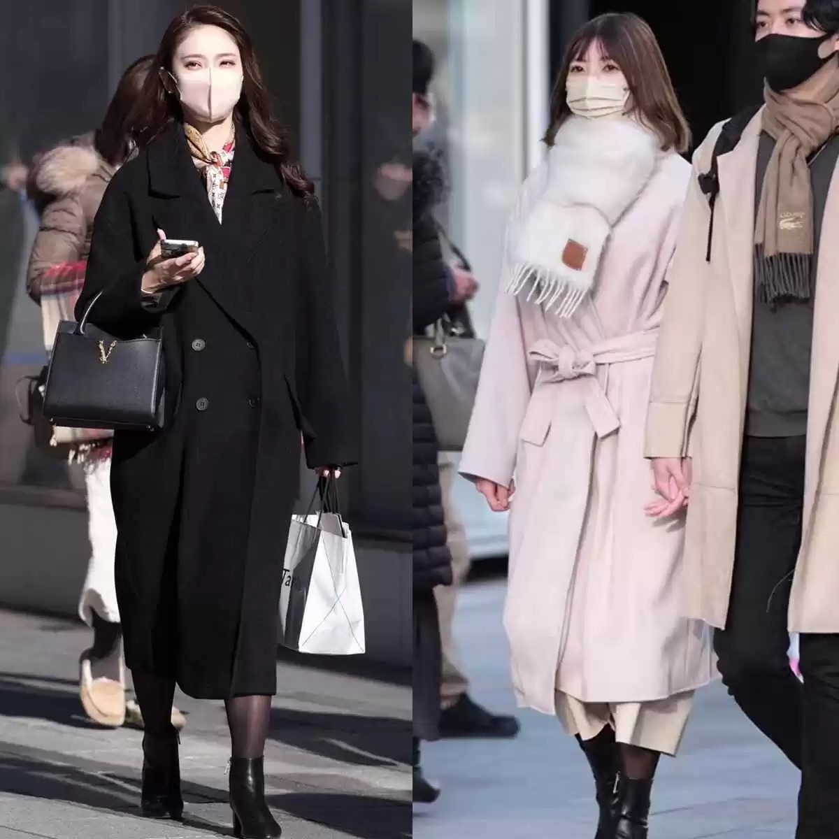 日本和台湾女生街拍示范:秋冬大衣配裸靴,轻松穿出高挑气质