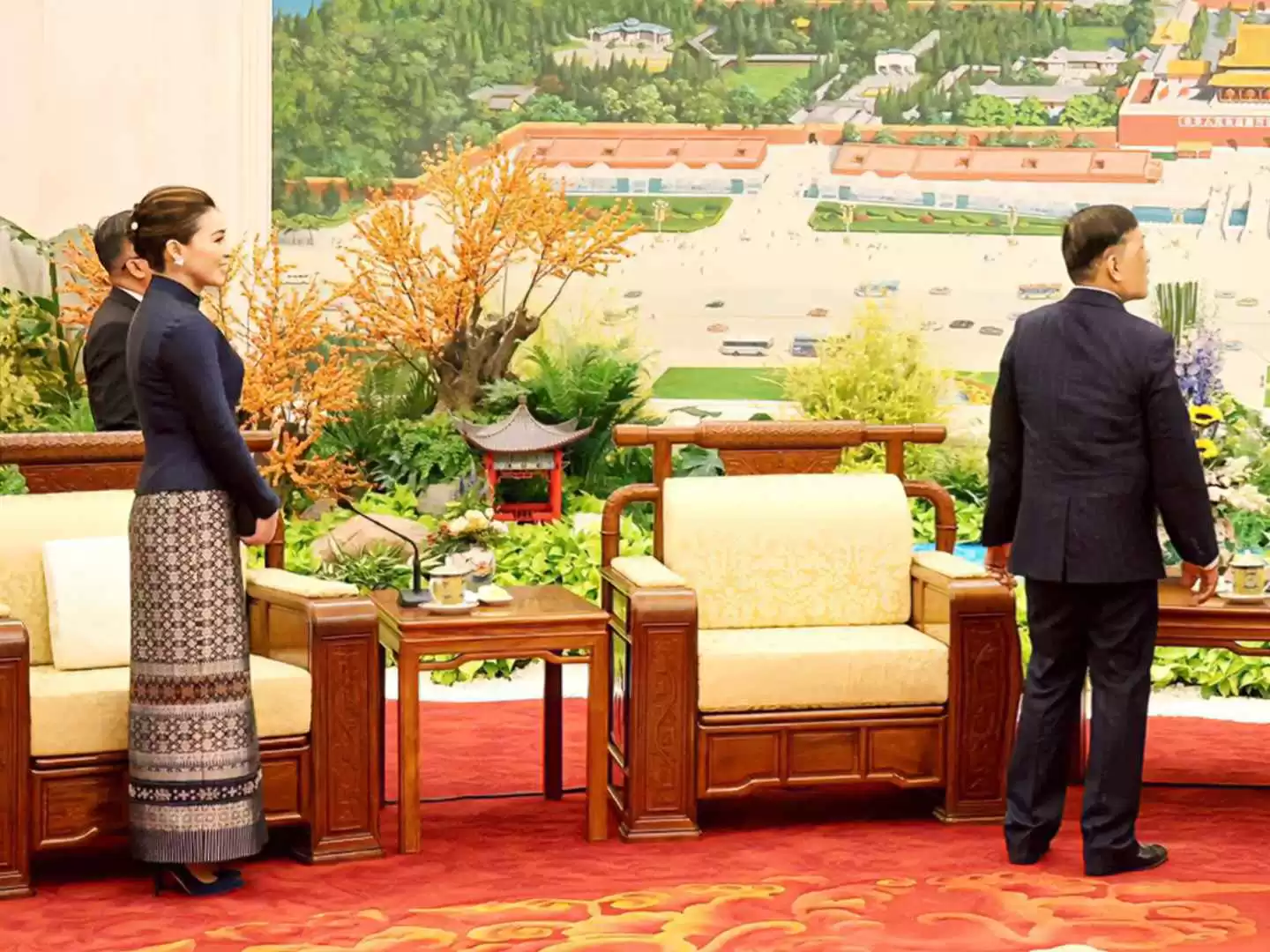 这次泰王访华,苏提达在晚宴上大放异彩,成为最耀眼的女眷。她的气质和穿搭秒杀全场,旁边的人都黯然失色。