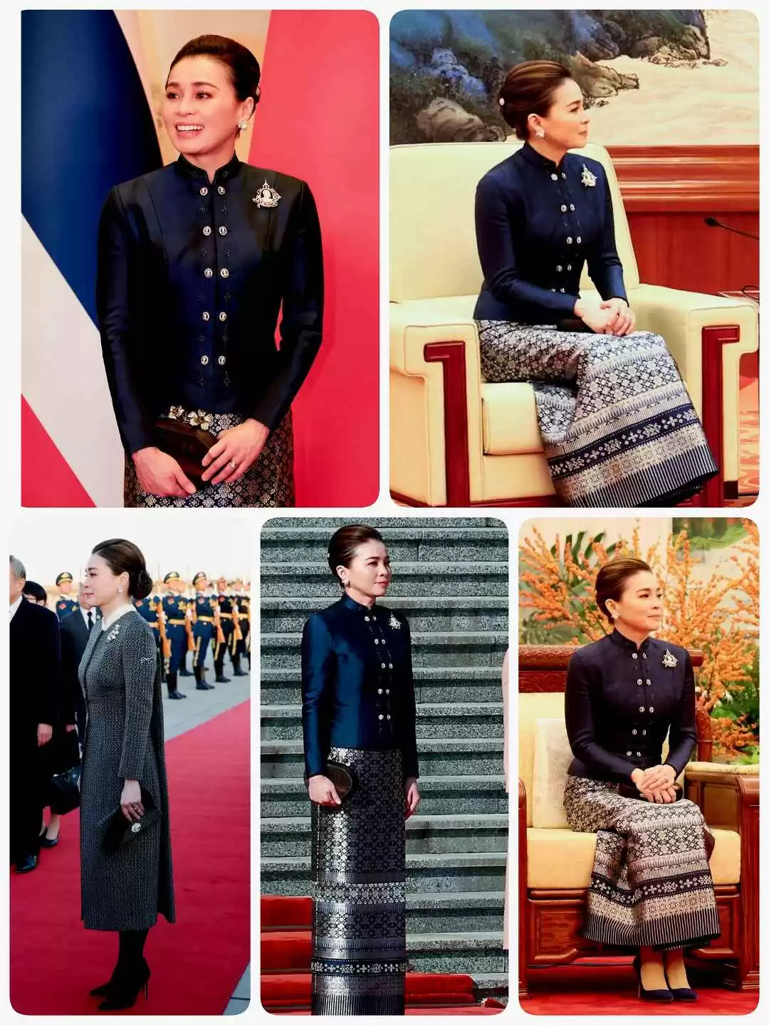 苏提达王后的衣品真是没得挑,那身蓝色丝绸礼服既大气又端庄,完美诠释了什么是人间富贵花。这次她陪着泰王来中国访问,造型一亮相就吸粉无数。