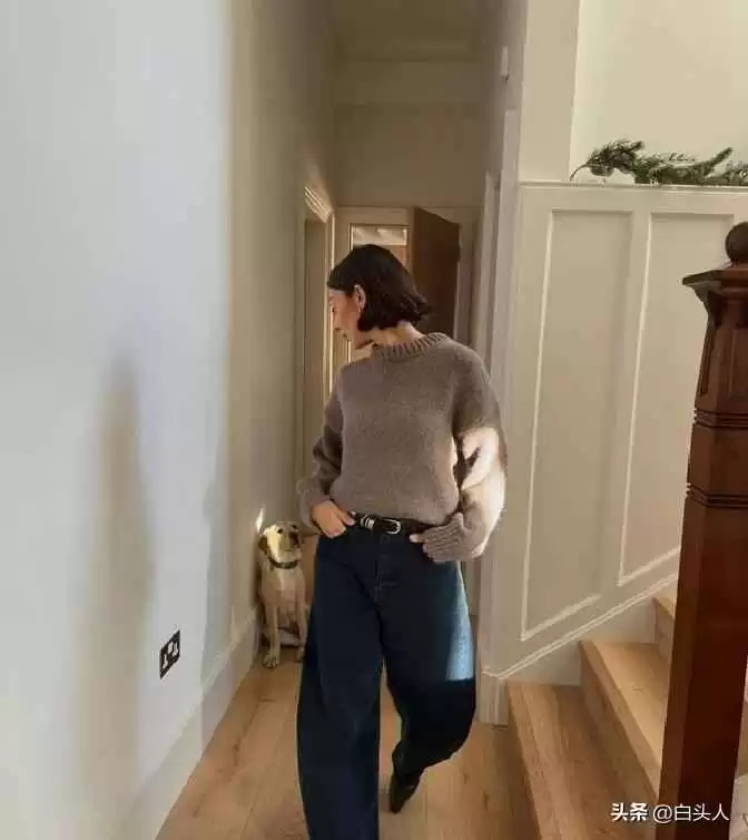 - 约会:奶茶色圆领毛衣+深灰弯刀裤+酒红乐福鞋。色彩和谐,质感温柔。毛衣下摆别太长,前摆塞进裤腰,突出腰线。