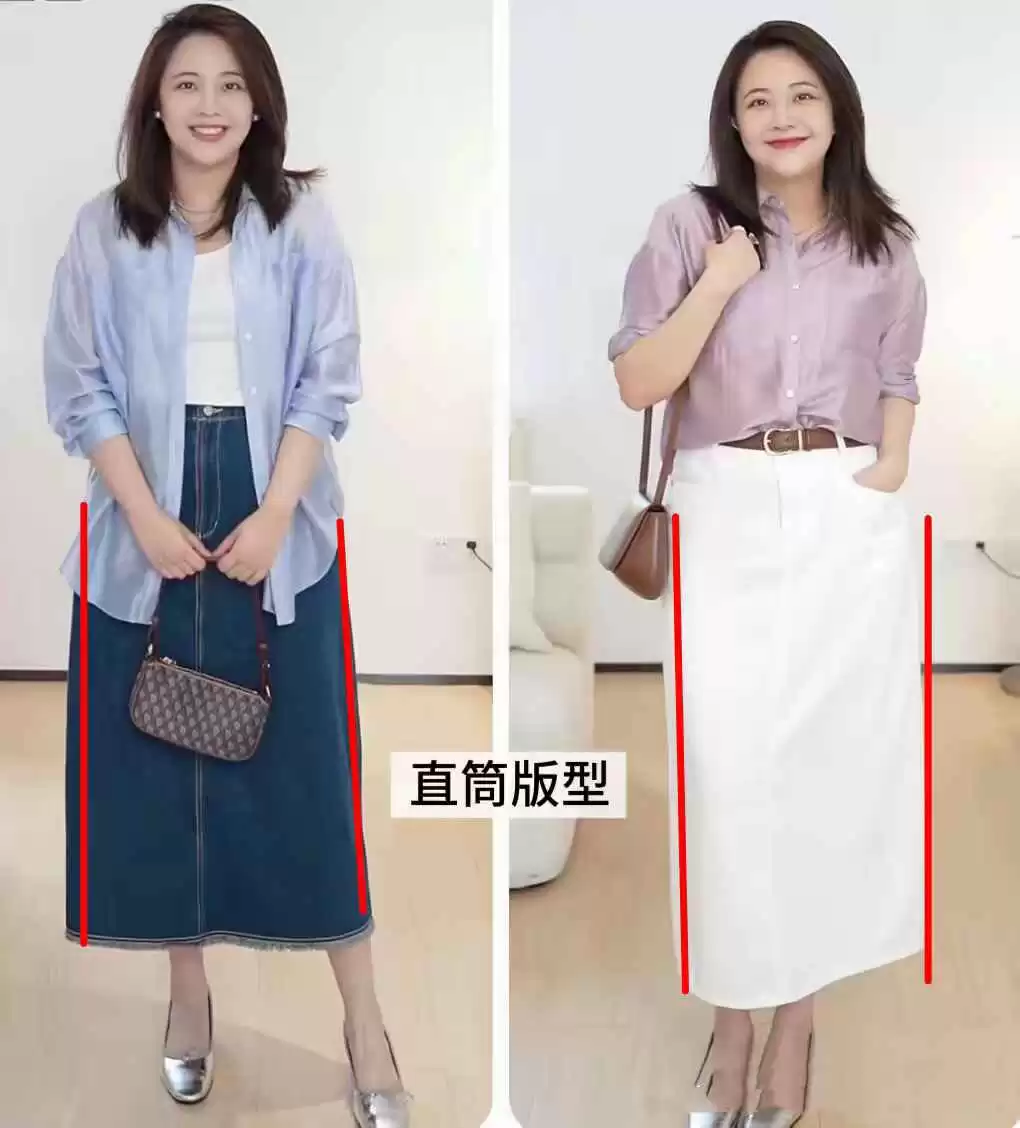 年纪稍大的微胖女生可以选垂顺面料,比如流畅的半身裙,遮肉显瘦,优雅又显贵气。