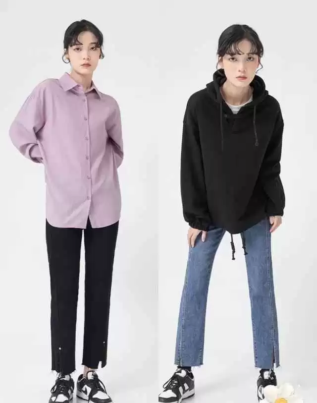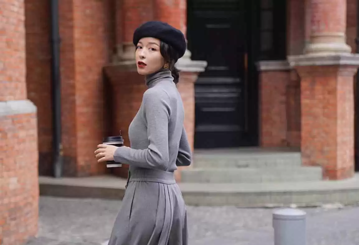 推荐基础纯色加垂感面料,纯色减少视觉冲击,尤其是黑色,显瘦效果立竿见影,配合垂坠感能拉长线条,收胯又显瘦。