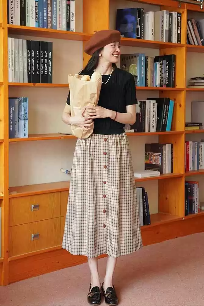 虽然入秋了,但天儿还热,裙子还能穿一阵。胯宽屁股大的姐妹,千万别碰包臀裙或紧身裙,宽松的A字裙或伞裙才是你的菜。