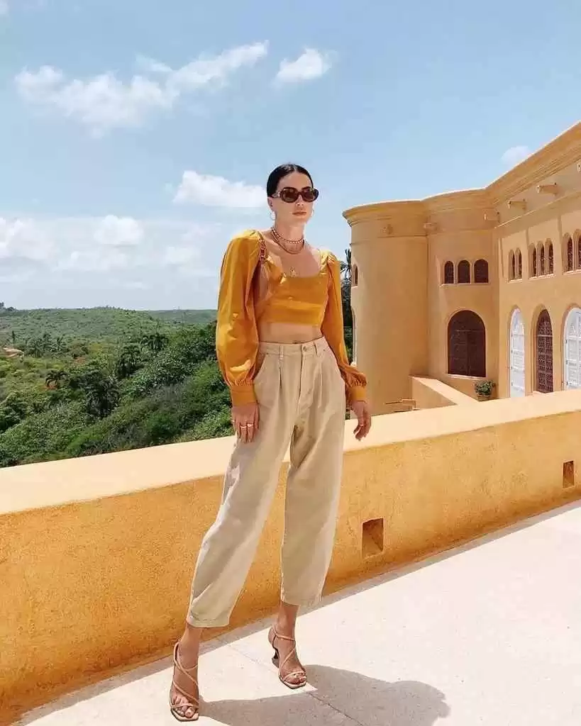 小个子女孩建议选九分款,露点脚踝最显高,配短上衣和高跟鞋,时髦感拉满。