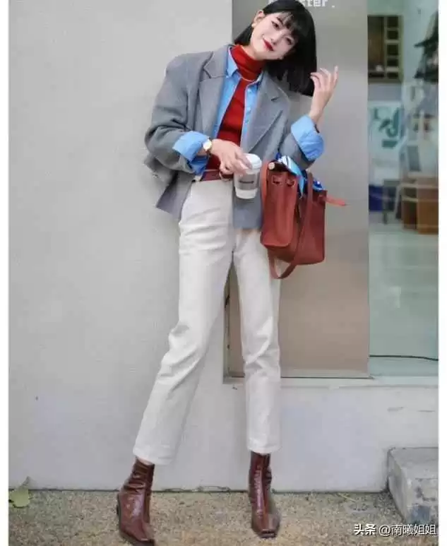 脚瘦长的女生可以尝试尖头短靴,搭配修身直筒九分裤,拉腿效果一流。这种穿法避免秋冬臃肿,微胖女生也能驾驭。