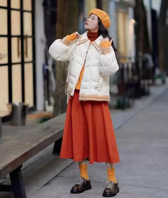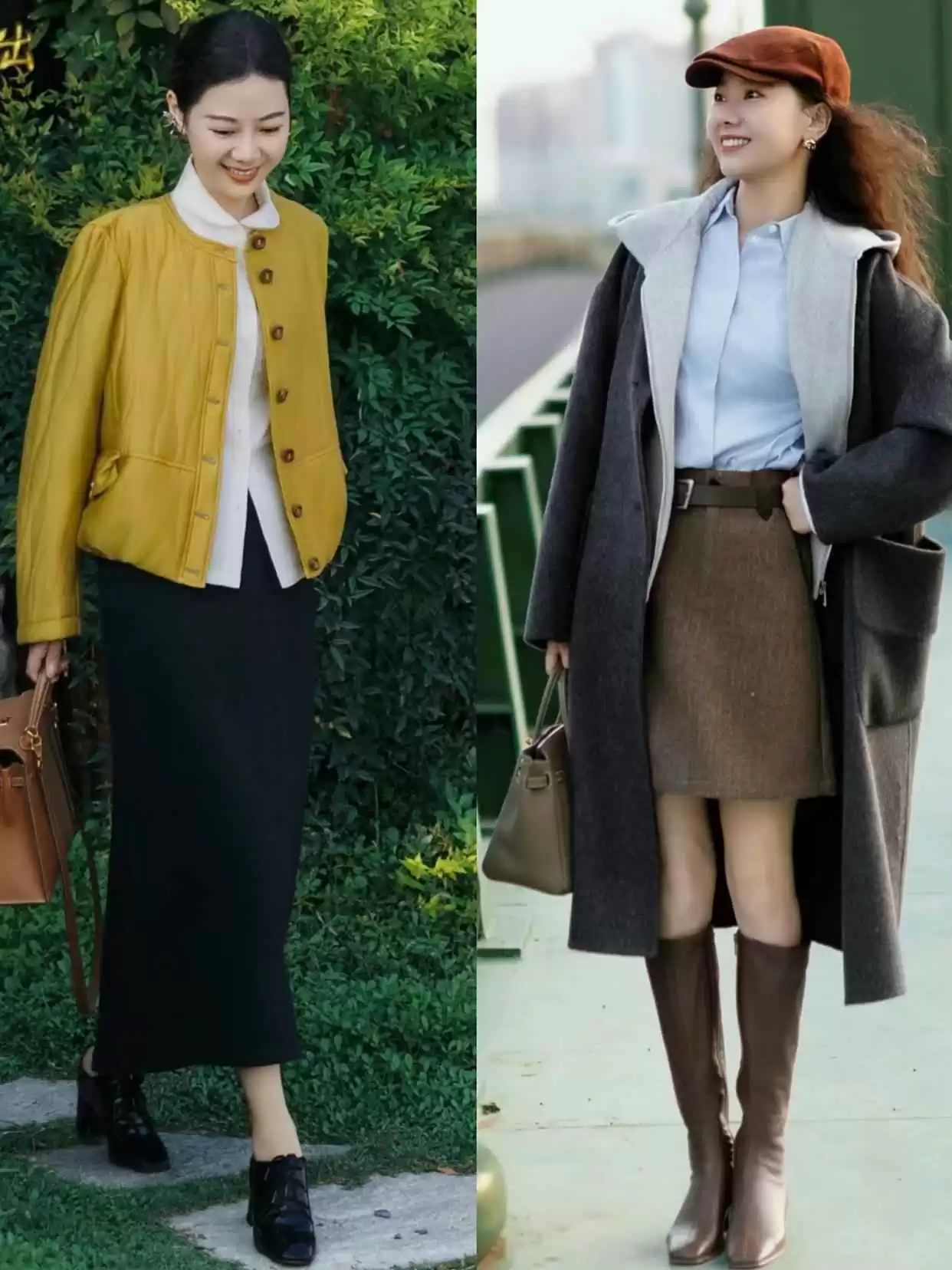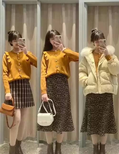 - 裙子:红色半身裙+白色毛衣+黑色长靴,优雅迷人,适合聚会或活动;橙色百褶裙+灰色针织开衫+白色运动鞋,充满学生气息,减龄有活力;黄色连衣裙配深色外套,秋冬也能展现柔美;