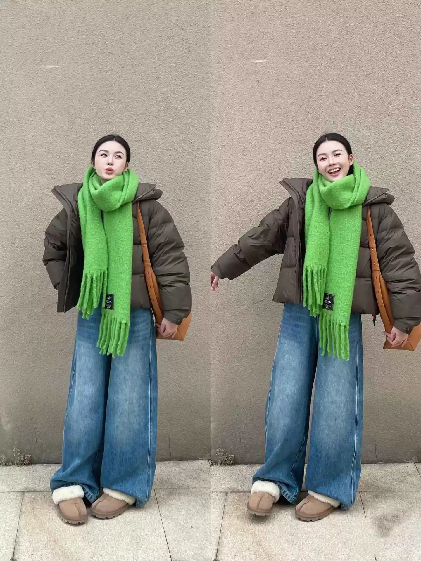 - 暖色系配饰:红色帽子、橙色手套、黄色包包,小巧亮眼,瞬间提升温暖度;