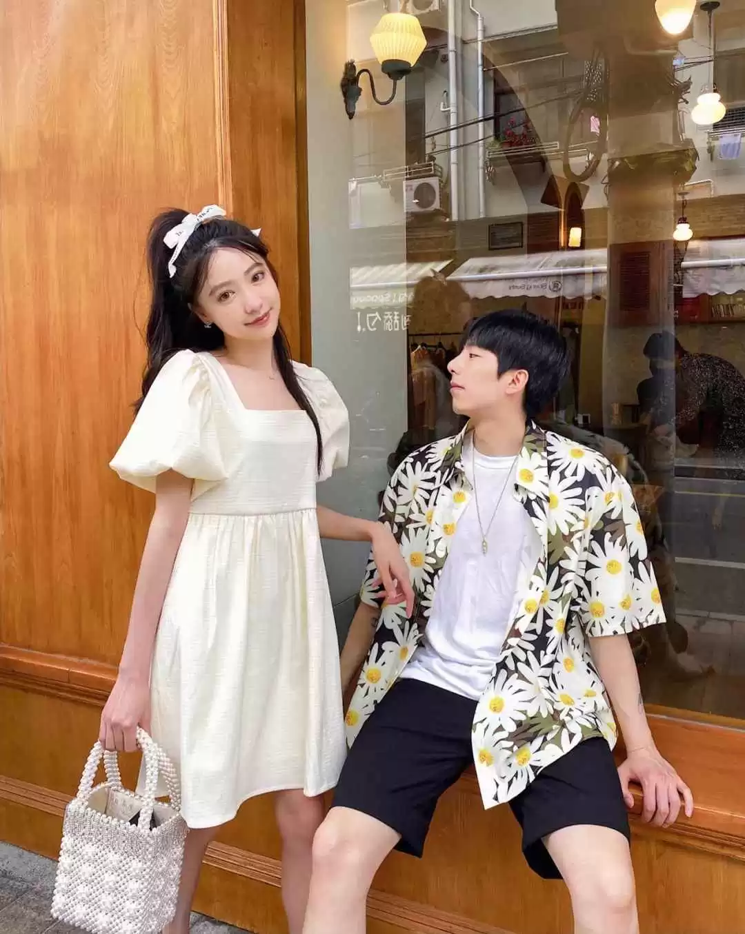 现在流行男女装混搭的情侣造型,其实搭配很简单,只要在色调和元素上互相呼应就行。比如这组用了明快的黄色和小雏菊图案,既有夏天的清爽又特别抢眼