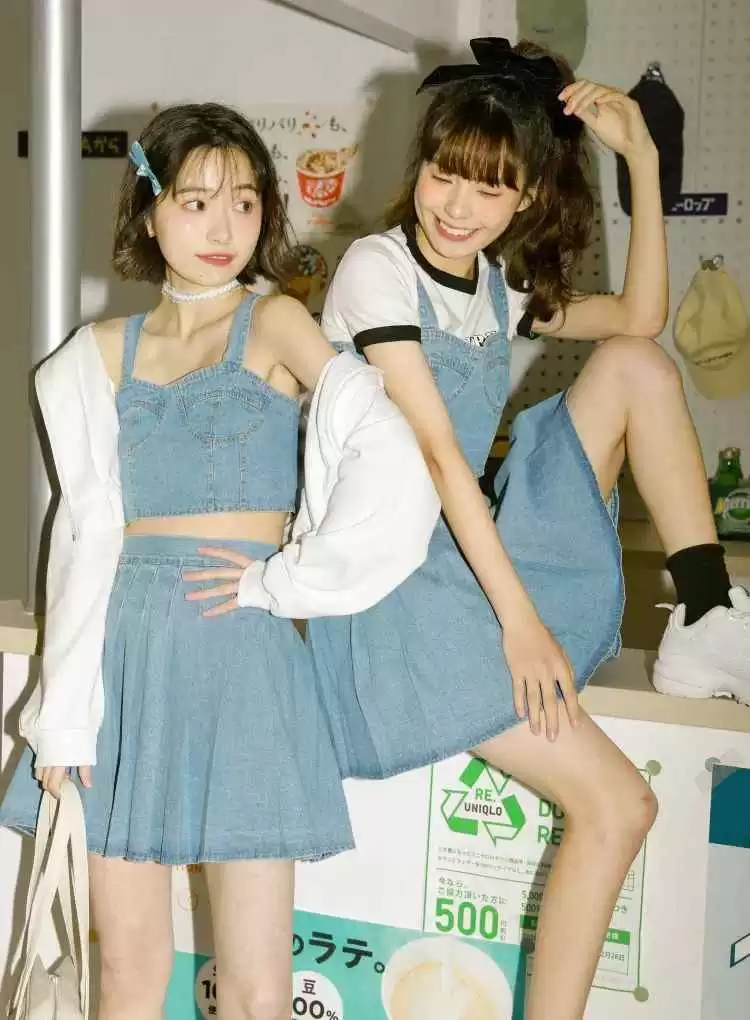 有句话形容闺蜜:我只想和你穿同款。不过选对款式很重要,不然容易变成谁穿谁尴尬。这种吊带配短裙的牛仔套装,谁穿都是甜酷少女的代表,而且经典不过时,放心入手