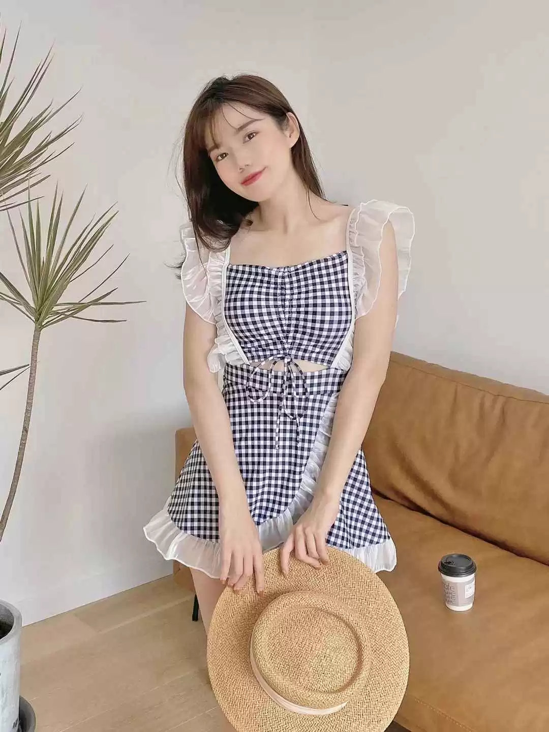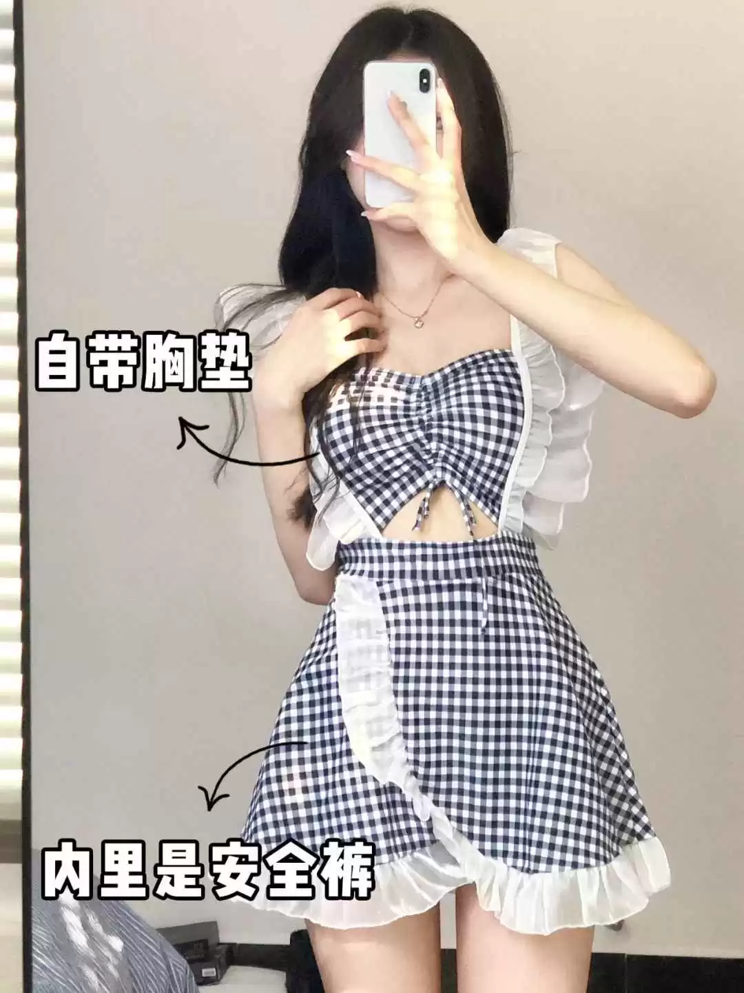 去海边少不了美美的泳衣。这种连体裙式设计,该露的地方恰到好处,该遮的都遮住了,纯欲风拉满,别说男生了,女生看了都会心动