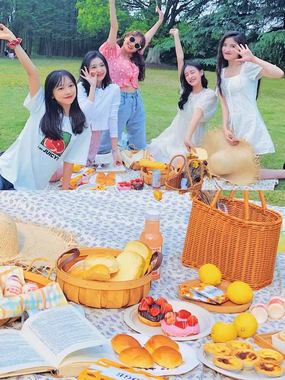和朋友们一起野餐,大家颜值差不多时,穿搭就是制胜关键。记住,亮色上衣是秘密武器!