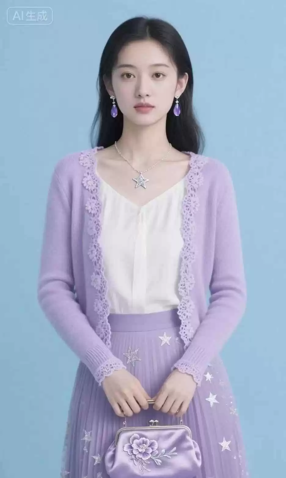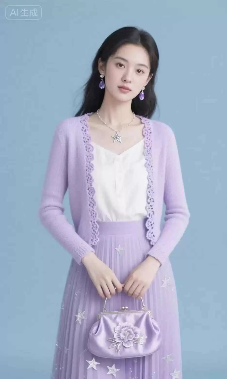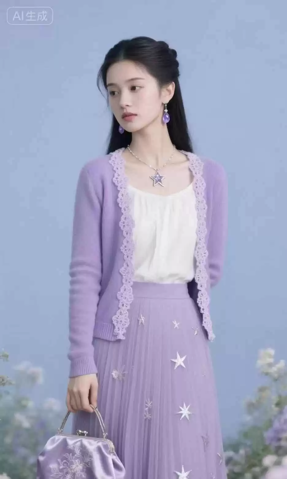 紫色配白色,简单大气,素雅耐看,整体效果高级,而且很衬肤色。白色能让紫色更醒目,适合各种场合。